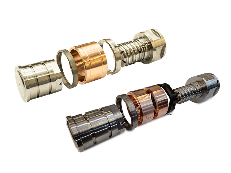 Con un diseño más corto permite adaptarse a los vástagos existentes en el cliente, ya sean macho o hembra, ajustándose según plano. Su sistema modular permite cambiar solo los anillos para su uso en aplicaciones estándar o de vacío sin necesidad de reemplazar el cuerpo del pistón. Además, incorpora un sistema de cizalla que permite cambiar el pistón completo de forma rápida, sin desmontar el vástago de la máquina de inyección, reduciendo tiempos de parada y mejorando la eficiencia del proceso.